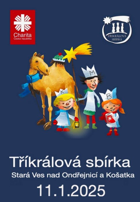 Návštěvu TŘÍ KRÁLŮ můžeme v naší obci očekávat v sobotu 11. 1. 2025. Skupinky koledníků přinesou tradiční koledu do všech končin Staré Vsi a Košatky. Můžeme jim poděkovat nejen úsměvem a vlídným slovem, ale, pokud je to v našich možnostech, také finančním darem, kterým přispějeme na sociální aktivity Charity Studénka.