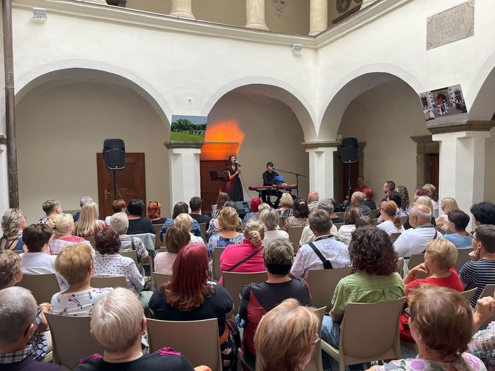 Lucie Šustek Rybnikářová za klavírního doprovodu Martina Pančochy interpretovali nejznámější české šansony, ale i světové klenoty tohoto žánru. Zavzpomínali na skladby Hany Hegerové, Zuzany Navarové, Lenky Nové, Edith Piaf, Jiřího Krhuta a dalších.