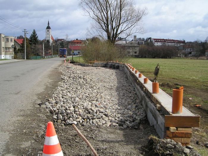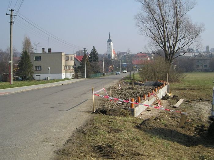 Stavba zastávky - křižovatka Pod Hůrkou (16.3.2008)