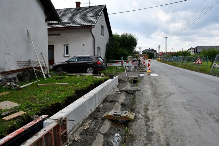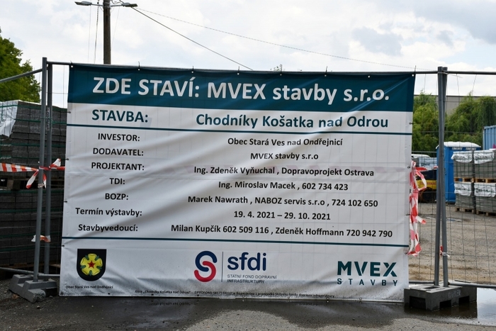 Výstavba chodníku v Košatce, stav ke dni 11.8.2021