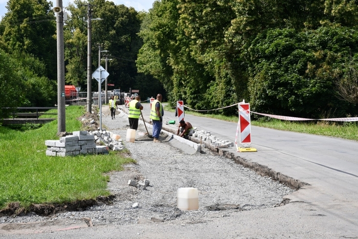 Výstavba chodníku v Košatce, stav ke dni (11.8.2021)