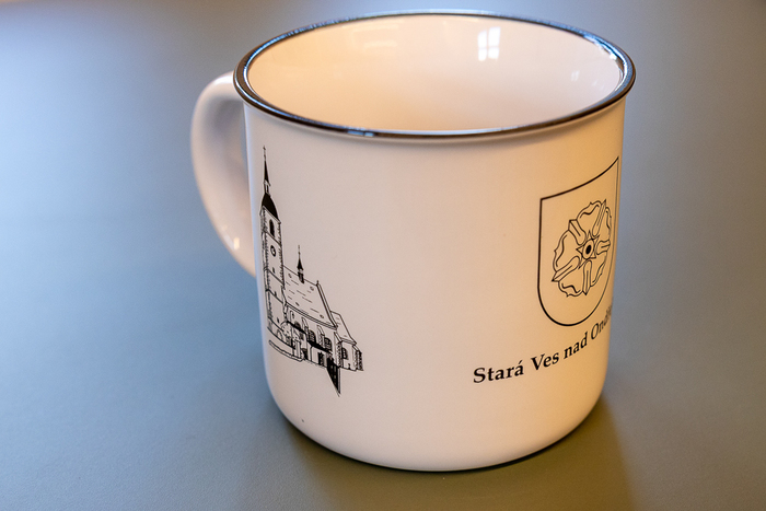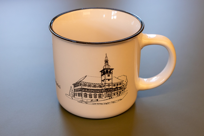 Úvod > Občan > Propagační předměty > Keramické hrnky > Hrnek se zámkem a kostelem - černobílý