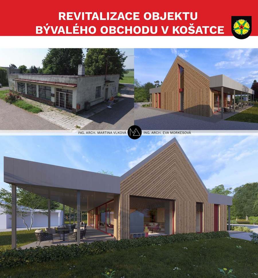 Je nám ctí představit „zhmotnění“ tohoto zadání v podobě studie revitalizace objektu bývalého obchodu v Košatce. Dámám Ing. Arch. Martině Vlkové a Ing. Arch. Evě Morkesové se podařilo ono „neskloubitelné“ dát dohromady tak, aby vše fungovalo, vše se doplňovalo navzájem, nemuselo se zbytečně bourat, a tím zůstal zachován genius loci celého místa. Výsledná studie pak bude středobodem modernizace celého prostoru, který se má stát novým centrem Košatky.